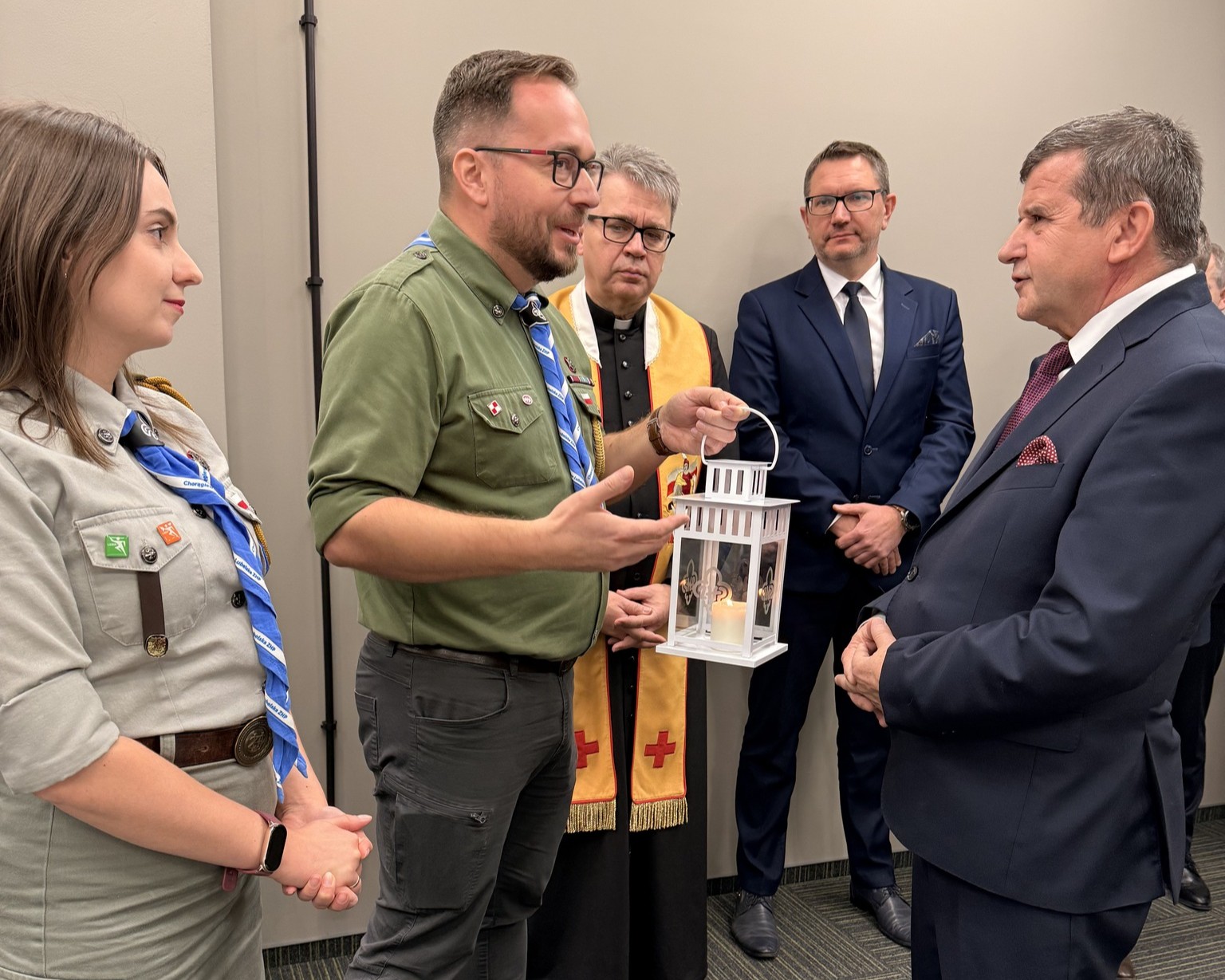 W przekazaniach Światła towarzyszyła nam reprezentacja harcerzy z różnych środowisk, którzy w swoich lokalnych miejscowościach także przekazują Betlejemskie Światło – do szkół, urzędów, partnerów, instytucji. To piękna tradycja, która pokazuje, że pomimo trwających konfliktów, wciąż możemy dzielić się dobrem, które łączy ludzi ponad podziałami i przypomina o tym, co naprawdę ważne.